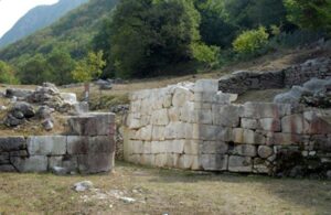 CAMPOCHIARO – Il dio del Santuario – Il santuario di Campochiaro è uno dei pochi luoghi di culto nel Sannio, o per lo meno nel territorio dei Pentri, di cui si possa indicare con certezza la divinità a cui era dedicato. Sappiamo che si tratta di Ercole come vari ritrovamenti mostrano; tra questi sono da segnalare un’antefissa che raffigura la lotta tra Ercole e il leone Nemeo, l’indicazione della divinità destinataria in una dedica osca su ceramica ed una statuetta in marmo di epoca più tarda. Espressiva, in questo senso, è anche l’attestazione della Tabula Peutingeriana che conserva il toponimo Herculis Rani in corrispondenza del sito del santuario.