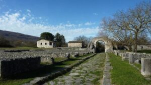 LA ZONA ARCHEOLOGICA DI ALTILIA – In una lettera del 14 marzo 1846 si parla di Altilia – Saepinum in questi termini: “Tutto l’agro è ancora intatto, tutte le porte della città, una di esse ha ancora l’arco intero… Il teatro in Altilia è ben conservato, la strada principale è ancora lastricata da enormi pietre, è completa, ci sono molti mucchi di pietre delle quali è riconoscibile la loro provenienza da edifici e templi e, quanto altro sta nella terra è indescrivibile!” Macerie e iscrizioni sono sparse dovunque… come dappertutto vi sono colonne”. È questo un luogo unico!